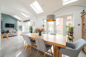 Vast refitted kitchen family room, utility, two reception rooms, ground floor cloakroom, four bedrooms all with fitted wardrobes and two modern bathroom facilities. Gas heating, double glazing, extensive parking, garage electric charging point and attractive enclosed rear garden.
