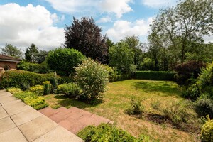 Mainly laid to lawn with mature trees and shrubs to the borders. Patio area adjoining the house.