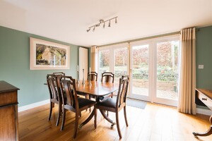 Solid oak flooring. French style double glazed double doors with matching side panels opening to the garden. Vertical radiator. Moulded skirting boards. Television point.