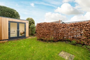 A contemporary styled modern Garden Room that is highly insulated and predominately clad in Cedar. With double glazed French style entrance doors with attractive views over the garden and matching picture side window. Various power points and recessed spot lighting. Oak effect flooring. Hard wired ethernet cabling. Wall mounted electric heater with Wi-Fi enabled controller.